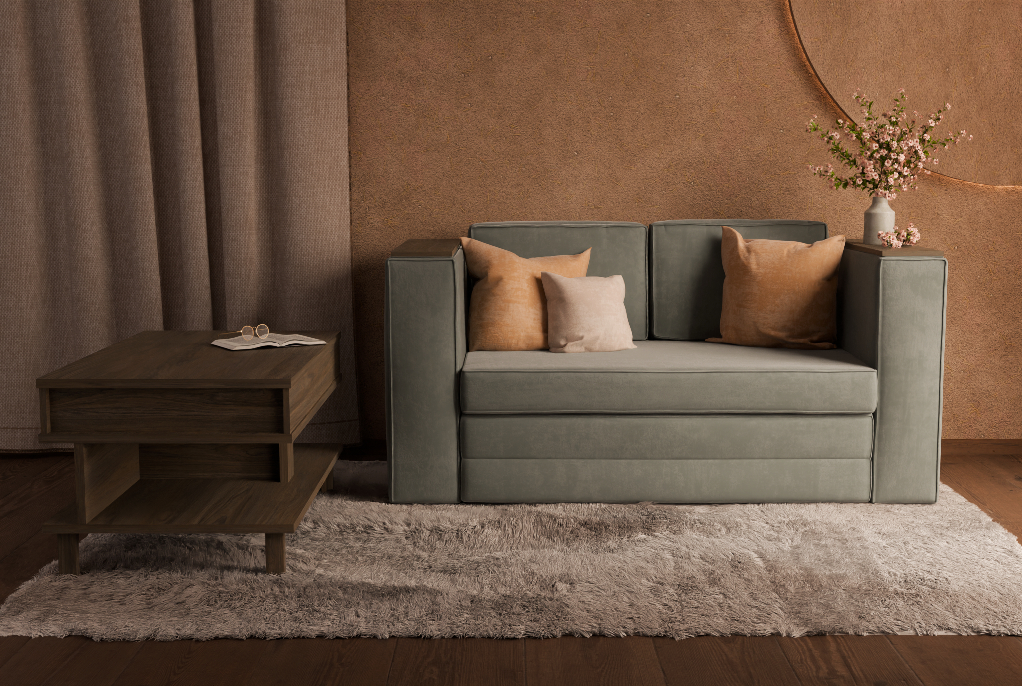 Sofa oraz stolik kawowy z podnoszonym blatem tworzą duet odpowiadający na realne potrzeby domowników – od komfortowego wypoczynku, przez przechowywanie, po ergonomiczne miejsce do pracy czy spotkań towarzyskich. Zależało nam na tym, by stworzyć zestaw, który odpowiada na te potrzeby bez kompromisów, ale z klasą – dlatego postawiliśmy na proste, eleganckie linie, wysokiej jakości materiały i przemyślaną funkcję spania opartą na składanych materacach.